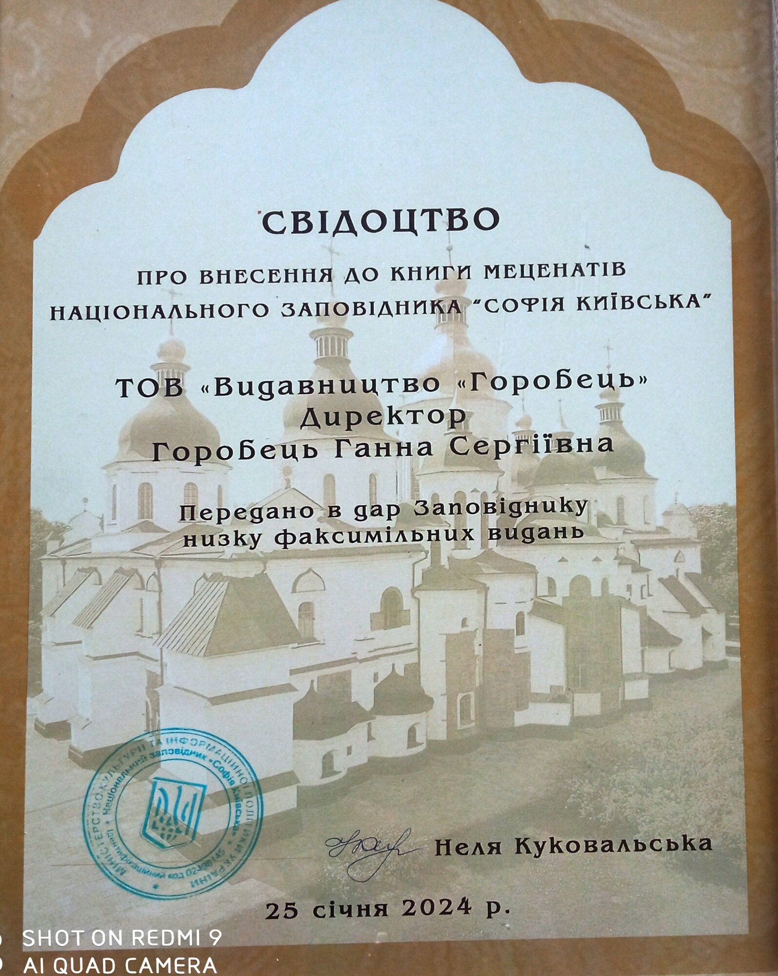 Видавництво "Горобець" теж отримало Свідоцтво про внесеня до Книги меценатів "Софії Київської". Щиро дякуємо за оцінку нашої діяльності.