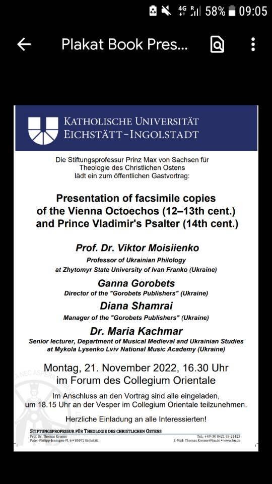 Презентація в Collegium Orientale в містечку Айхштет (Німеччина)