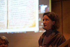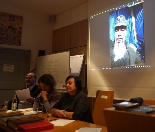 Незвичайна тим, що три доктори наук, які брали участь в дослідженнях рукописів, факсимільні копії яких ми привезли в Німеччину – наразі на фронті. Але нам вдалося почути Віктора Мойсієнка, доктора наук, історика мови, а нині – сержанта мінометного розрахунку, який підключився в режимі відеозв'язку прямо з передової. На виступ професора була особливо бурхлива реакція студентів і професорів, українців і німців.