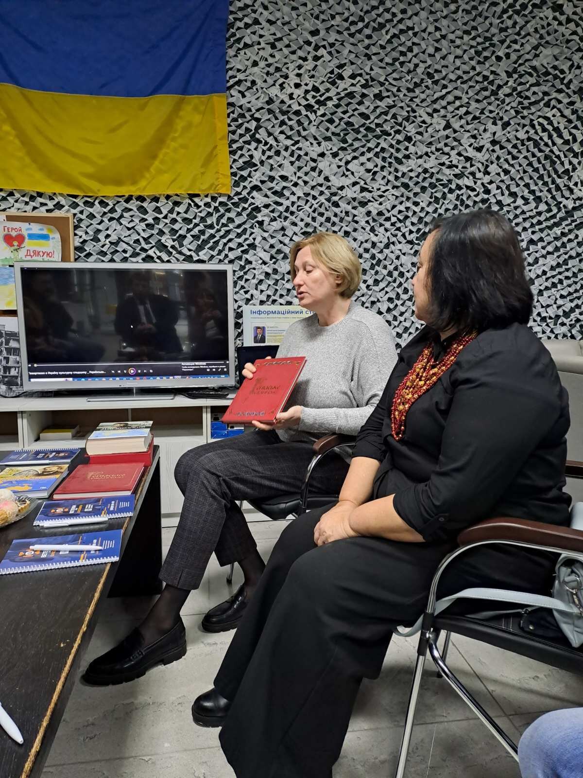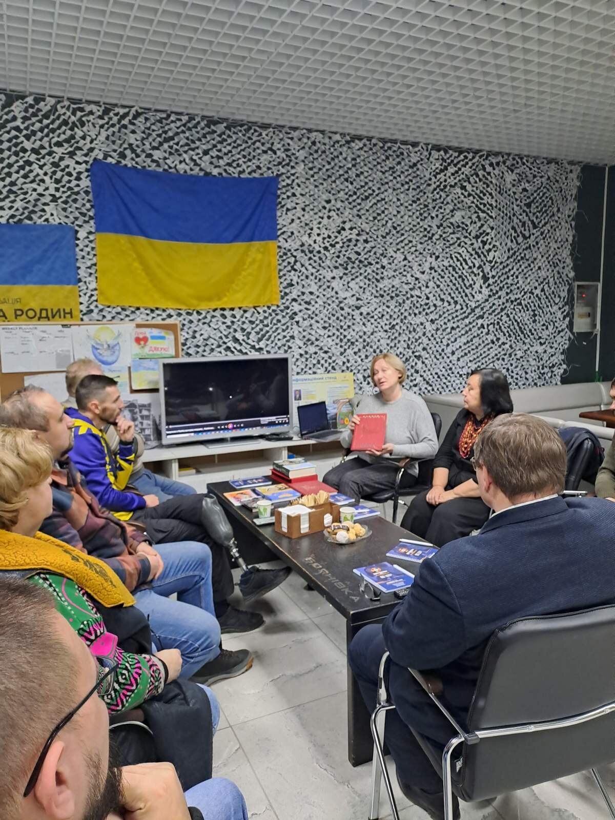 Зустріч пройшла в дружній атмосфері, обговорювали українську рукописну спадщину та розповідали про історії збереження спадщини буковинського регіону. В кінці зустрічі обмінялися подарунками. Бібліотека Ветеран Хабу отримала факсимільне видання Реймського Євангелія та книги видавництва Travel Book. Натомість керівник Ветеран Хабу Олександр Кошовий подарував пані Ганні Горобець та Олені Башкатовій картини військових, які проходять реабілітацію на Буковині.