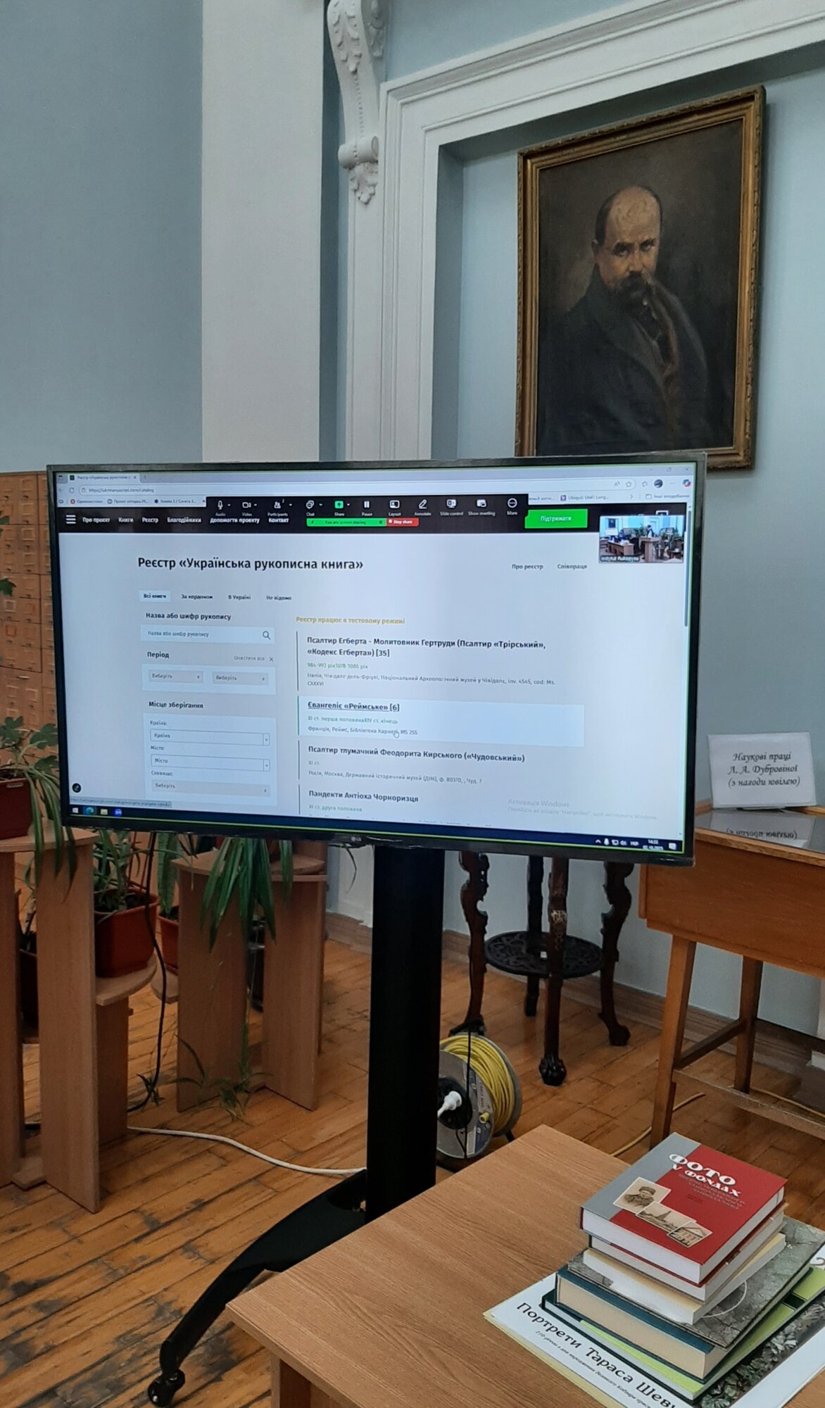 Другим представили цьогорічний доробок — доповнення онлайн реєстру «База даних українських рукописних книг ХІ–XVI ст.» у рамках проєкту «Повертаємо в Україну культурну спадщину», що ми створюємо в партнерстві з НЗ «Софія Київська» при підтримці Українського культурного фонду.