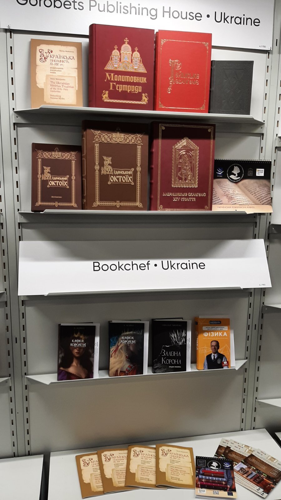Серед експонованих видань — факсимільні книги видавництва «Горобець» видані за підтримки Українського культурного фонду: Лавришівське Євангеліє, Реймське Євангеліє, Віденський Октоїх, Молитовник Гертруди і Молитовник князя Володимира.