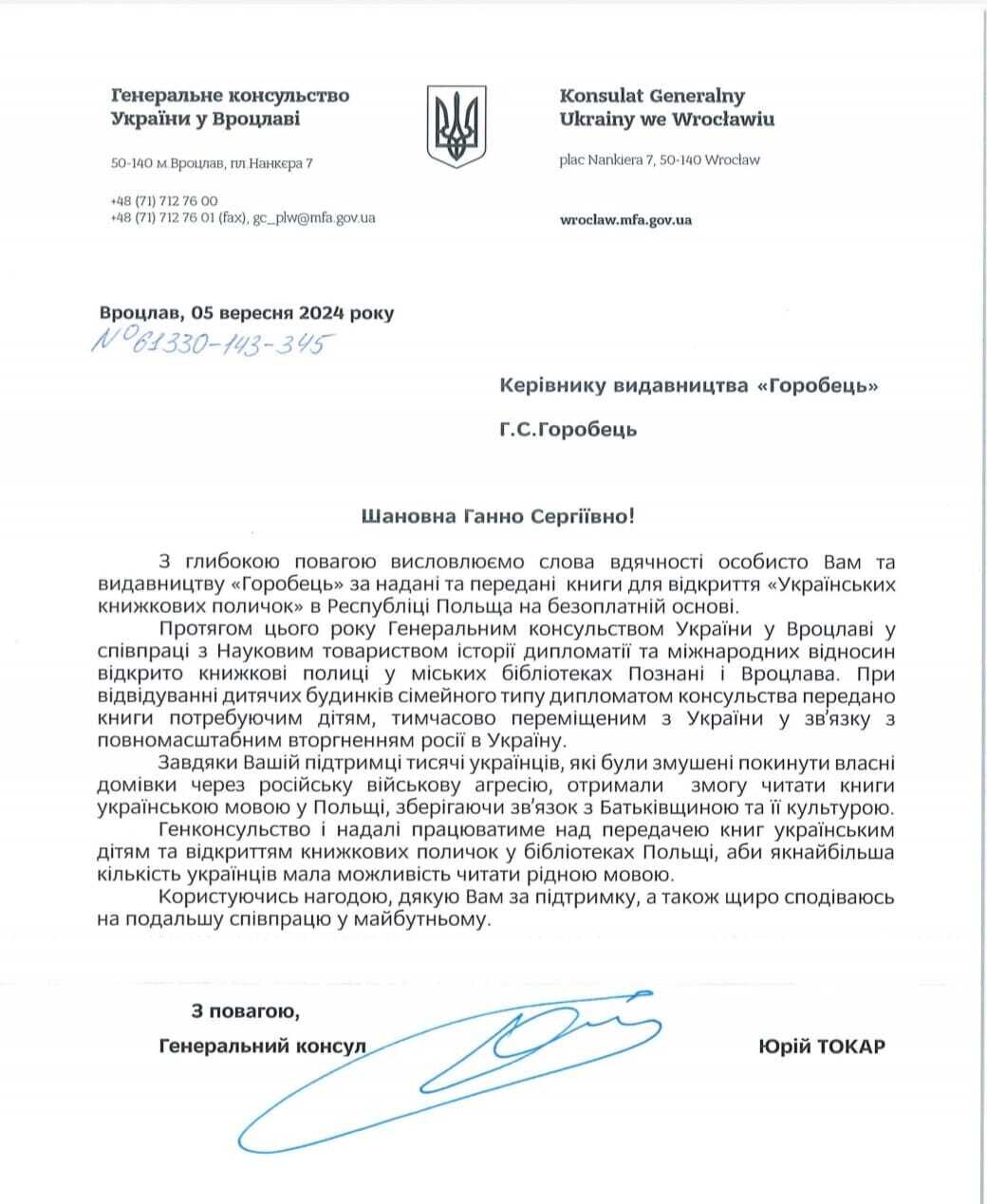 Дякуємо за слова вдячності Генеральному консульству України у Вроцлаві та обіцяємо подальшу підтримку цього проєкту.