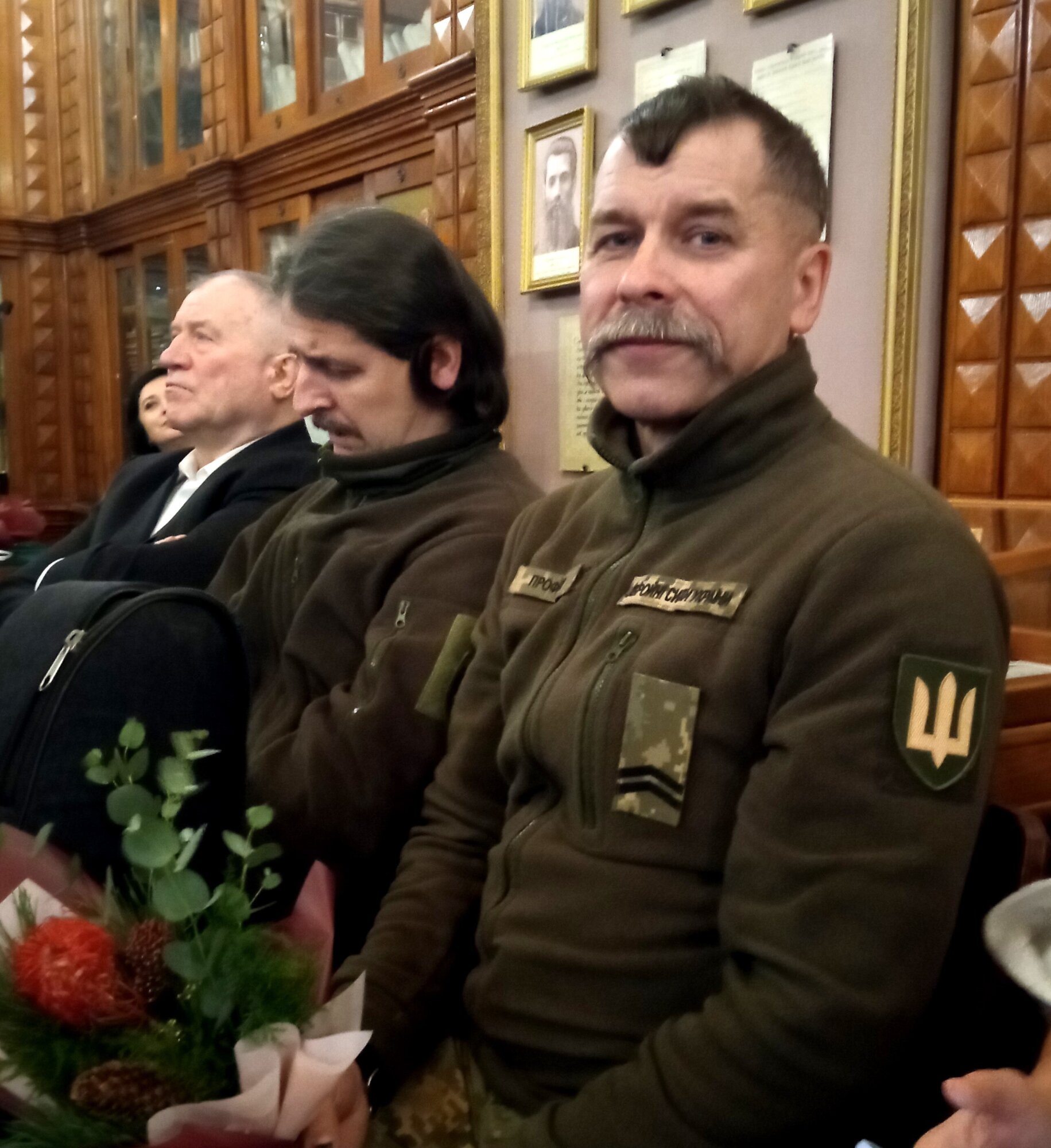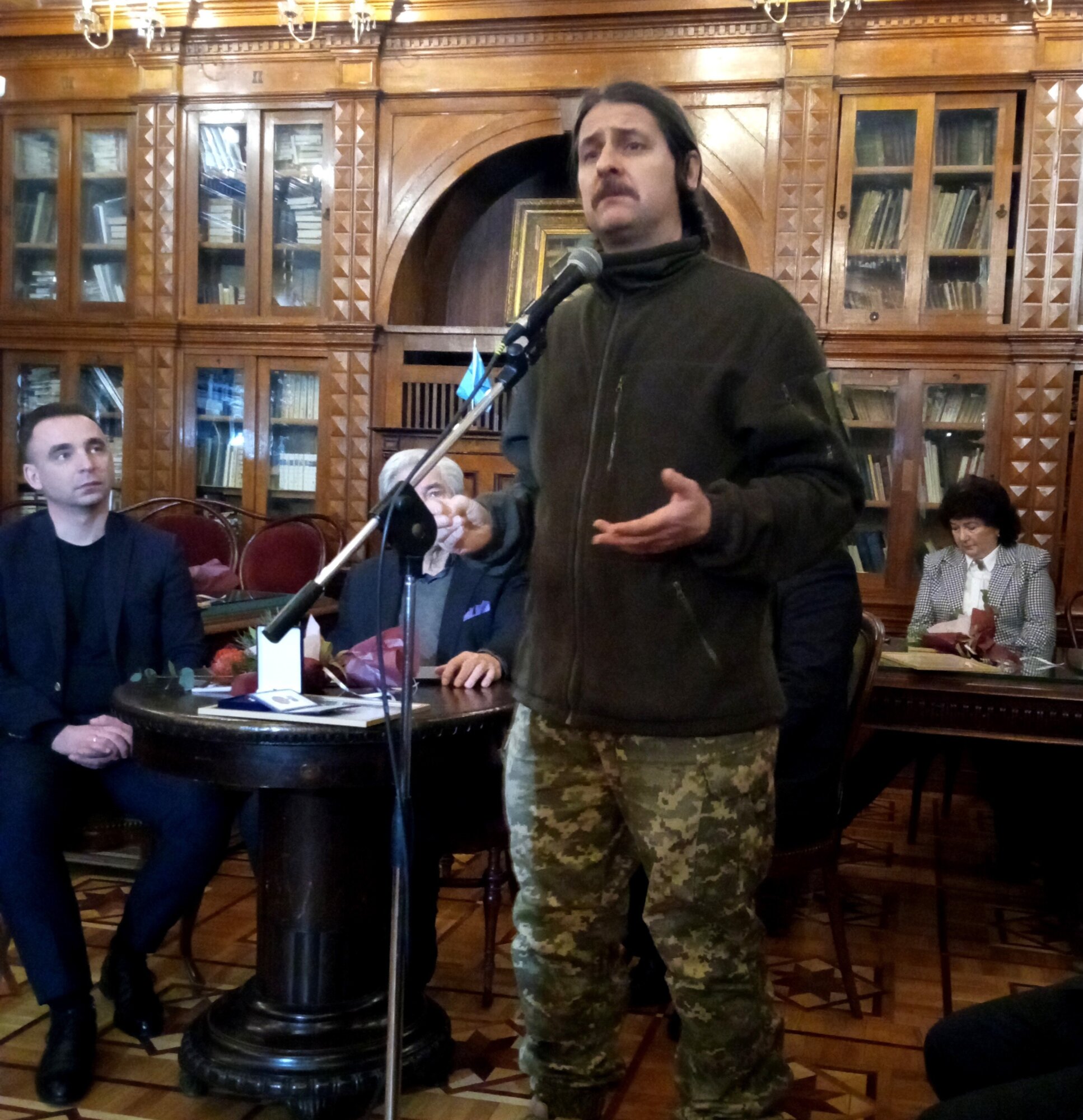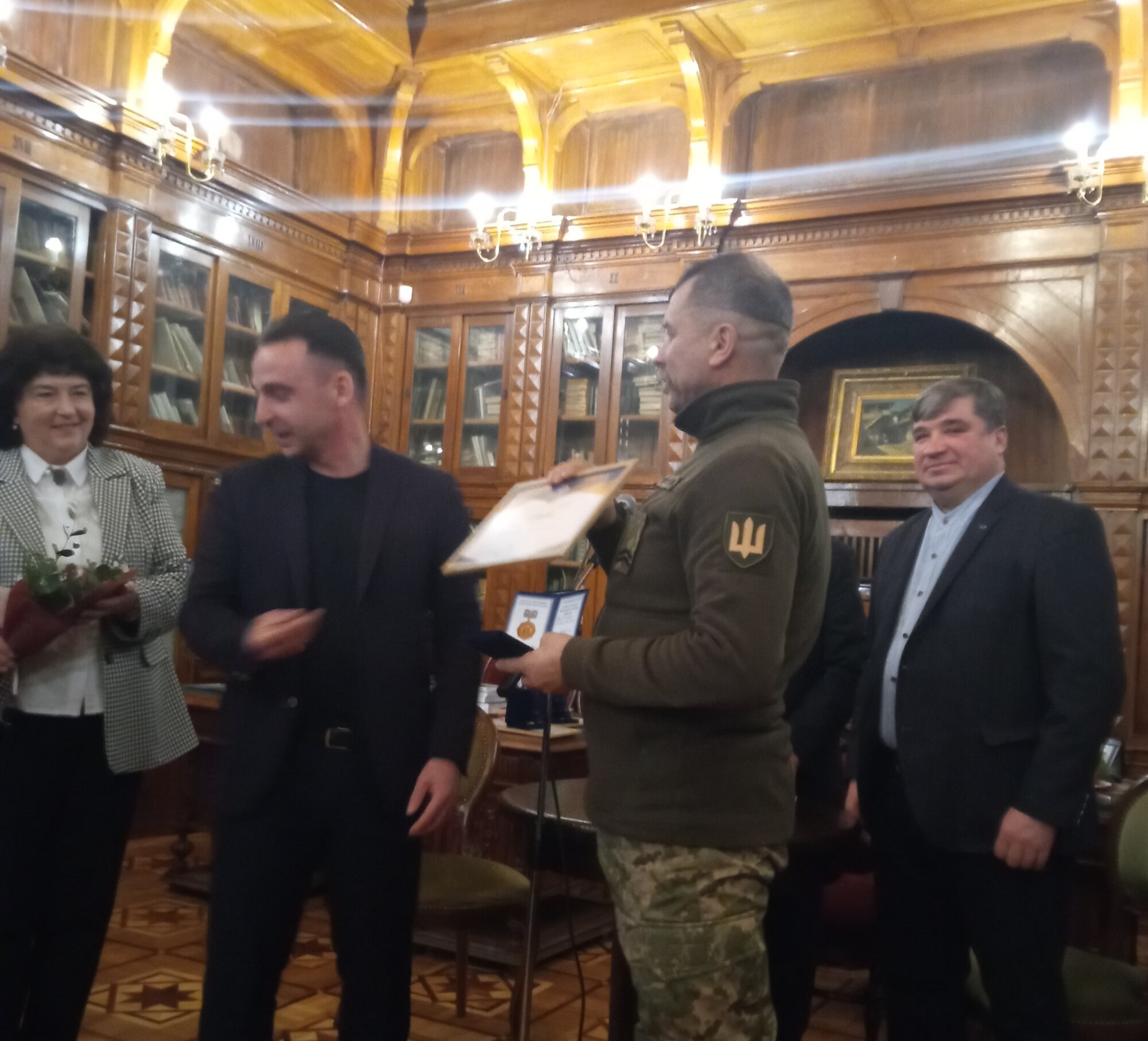 Серед них — Віктор Мойсієнко, професор, доктор наук, дослідник старовинних манускриптів, з яким маємо честь працювати над проєктом «Повертаємо в Україну культурну спадщину» більше п'яти років та який приїхав на вручення прямо з фронту.  Директорка видавництва «Горобець» — Ганна Горобець —прийшла підтримати і привітати пана професора.